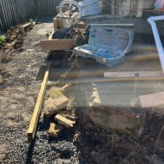 The existing pergola needed removing as it was rotten and falling down. A retaining wall and new patio needed constructing.